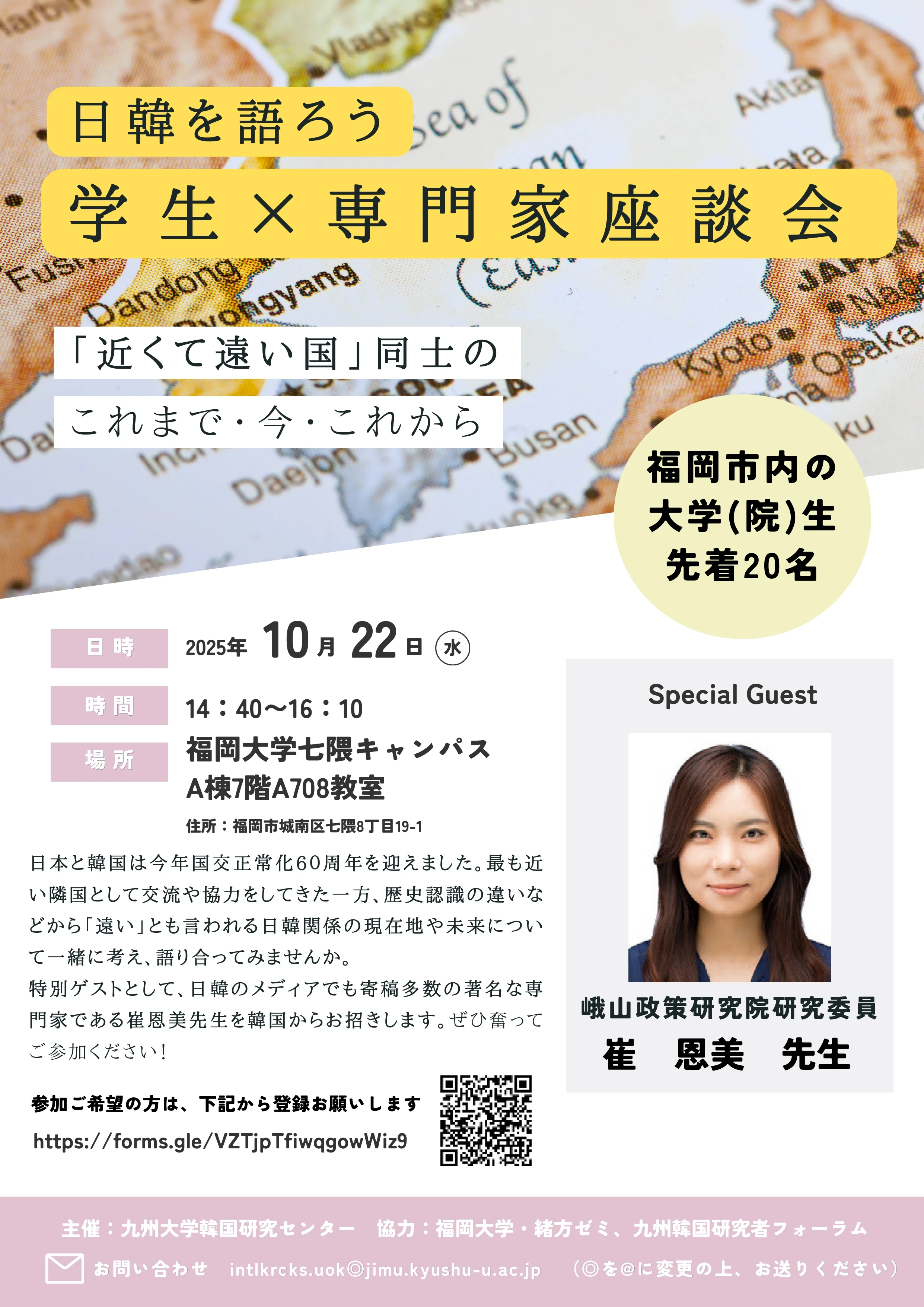 崔恩美研究委員は、日頃から日韓のメディアにもよく登場されている、日韓関係の専門家です。