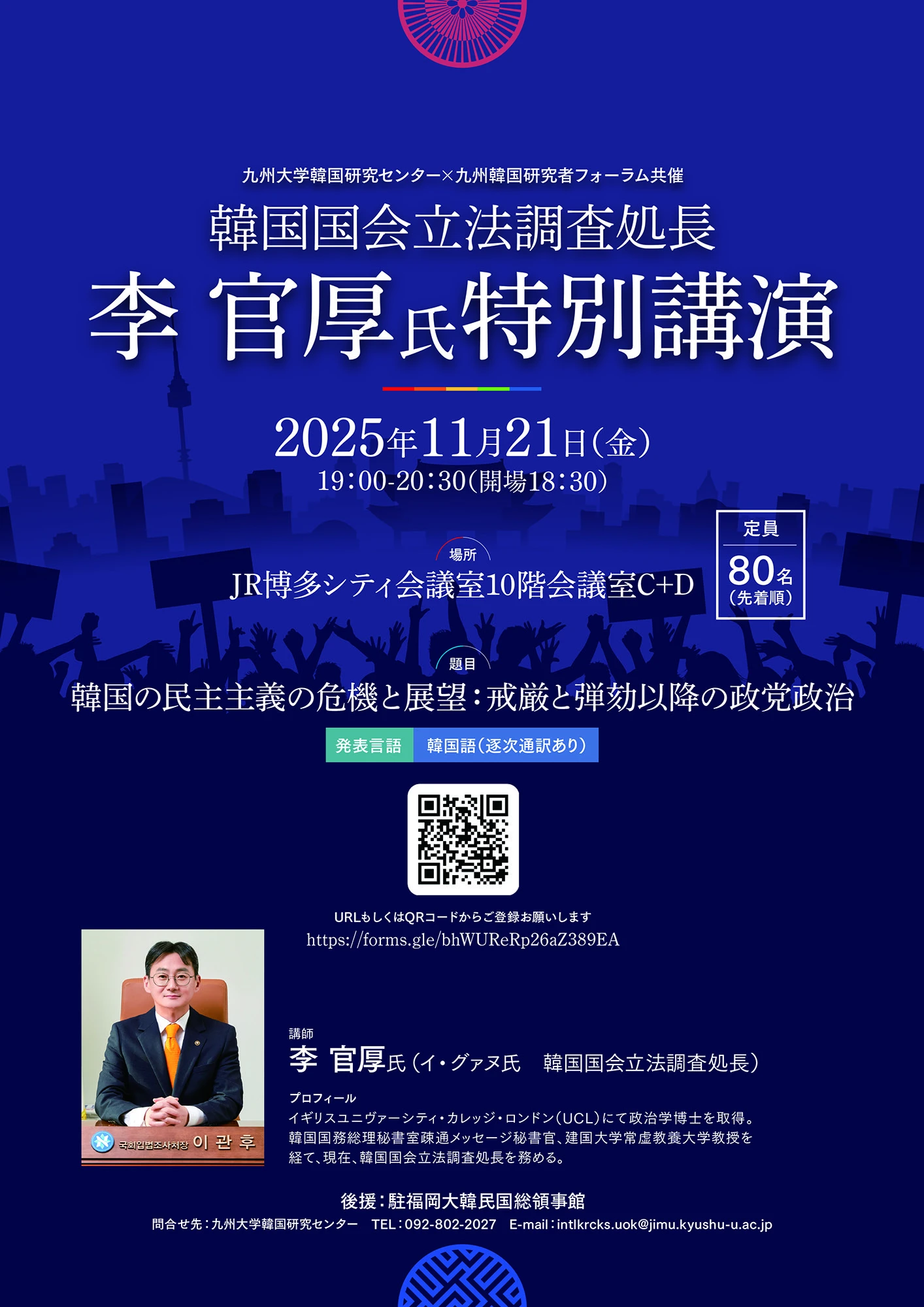【特別講演】韓国の民主主義の危機と展望:戒厳と弾劾以降の政党政治(韓国国会立法調査処長 李官厚さん)