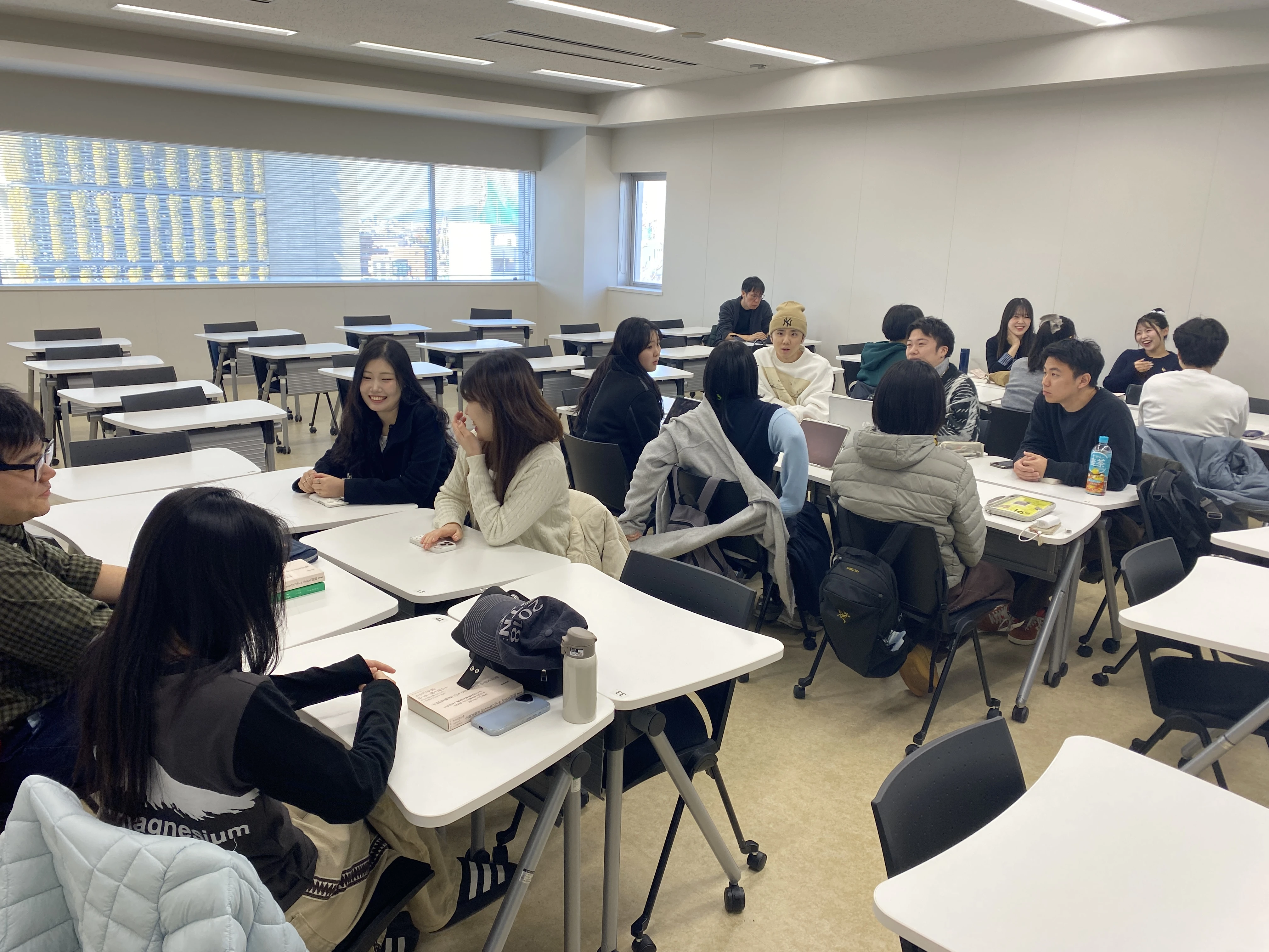 2026 年 1 月 9 日(金)、福岡大学にて韓国の東国大学の日本学科の学生と福岡大学の東アジア地域言語学科の学生による学生交流会が開催された。