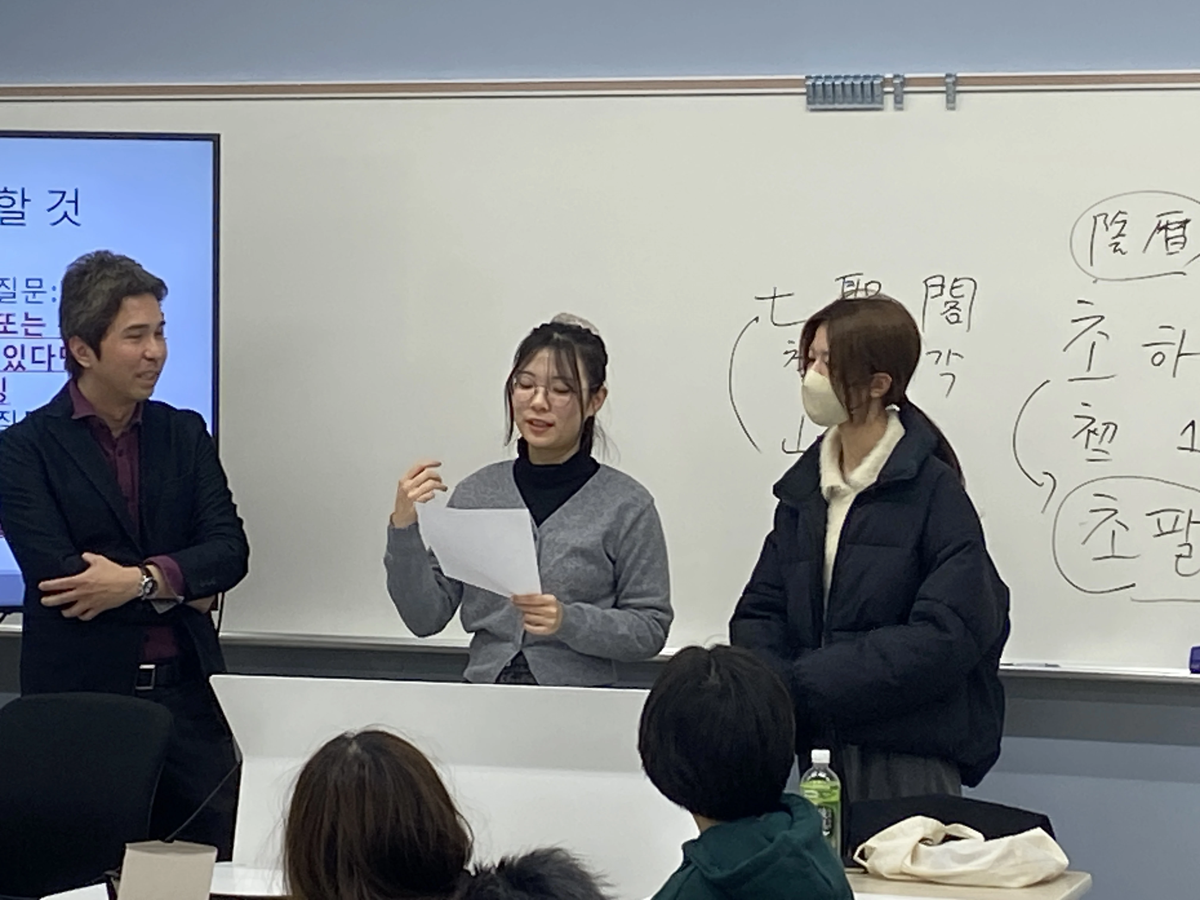 学生交流会に先立って同日には、東国大学の日本学科の学生たちが柳忠熙准教授の担当する韓国言語文化特講Bに参加した。