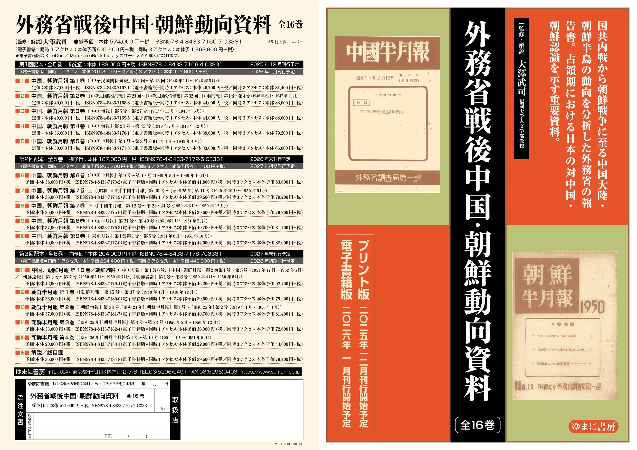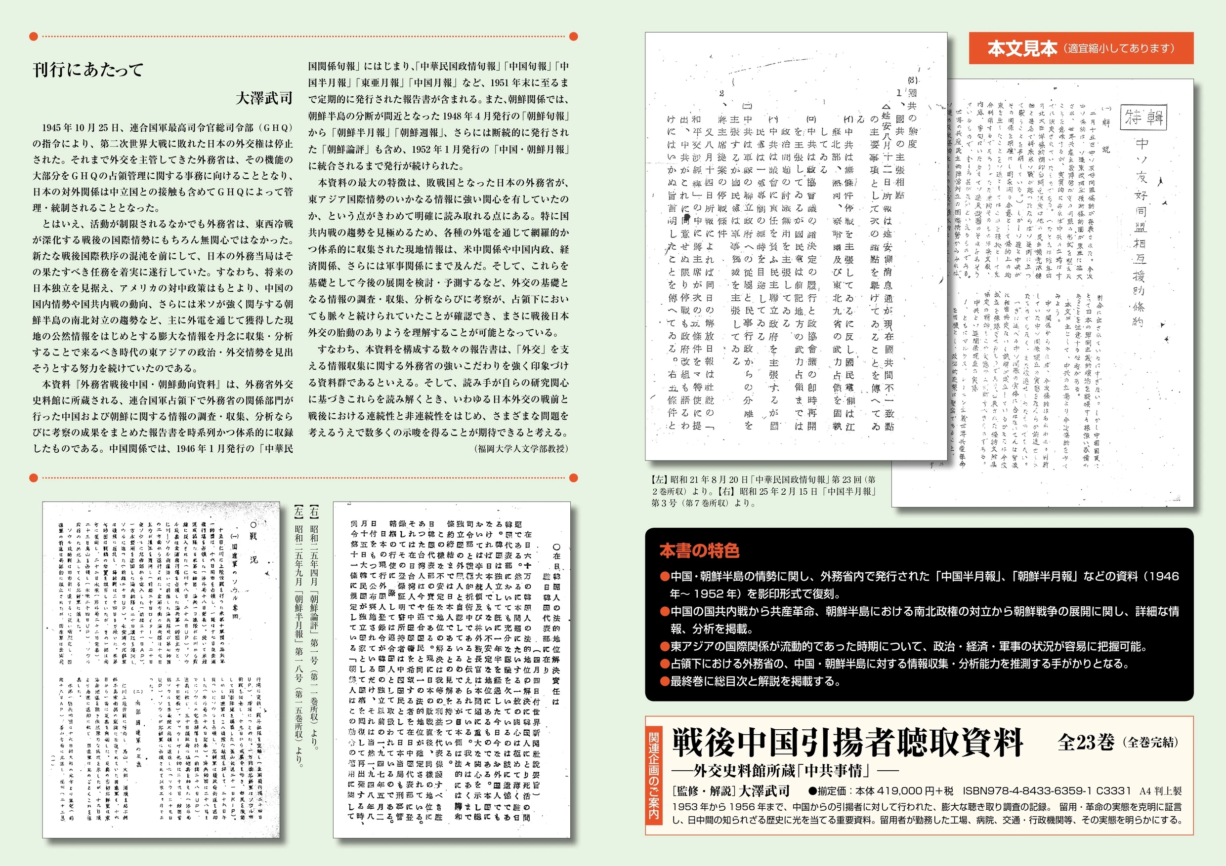 大澤武司先生の監修・解説『外務省戦後中国・朝鮮動向資料』刊行