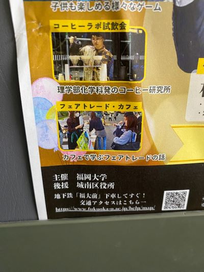 秋好先生と学生たちの「フェアトレード」チームもイベントに参加します。現在、福岡の老舗スイーツショップのChocolate Shopさんとコラボレーション企画が進行しています。今回はまだ企画商品のお披露目とまではいきませんが、何と明日、Chocolate Shopさんの人気商品のプレゼント企画もあります!全員とはいきませんが、我々のフェアトレードの学びに参加してくれた方、先着100名の方にプレゼント致しますので、是非、お越し下さい!