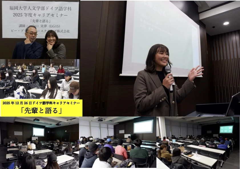 12月26日4限(in 中央図書館1階「多目的ホール」)に、ドイツ語学科のキャリアセミナー「先輩と語る」を開催いたしました。