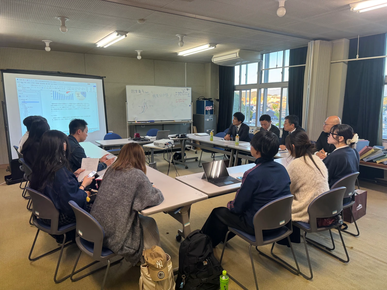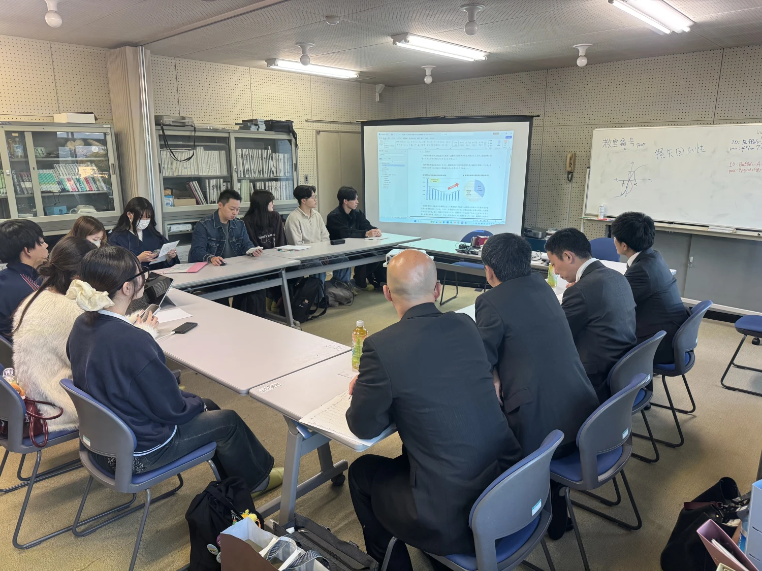 11月10日の文化学演習では,福岡県警察本部生活安全総務課ならびに福岡県警城南警察署生活安全課から4名の担当者の方をお招きし,これら3プロジェクトの中間報告会を実施しました。学生たちは研究計画書や調査の経過などを発表し,出席された警察職員の方々からは温かい励ましのお言葉とともに,実務の視点に立った鋭いご指摘や改善のヒントを数多くいただきました。今回の中間報告会は,学生にとって,自分たちの研究が地域の防犯にどのようにつながるのかを実感できる,大変貴重で意義深い時間となりました。