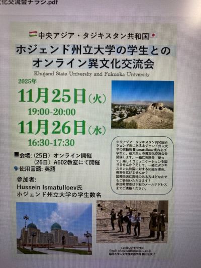 中央アジア・タジキスタン共和国 ホジェンド州立大学の学生とのオンライン異文化交流会