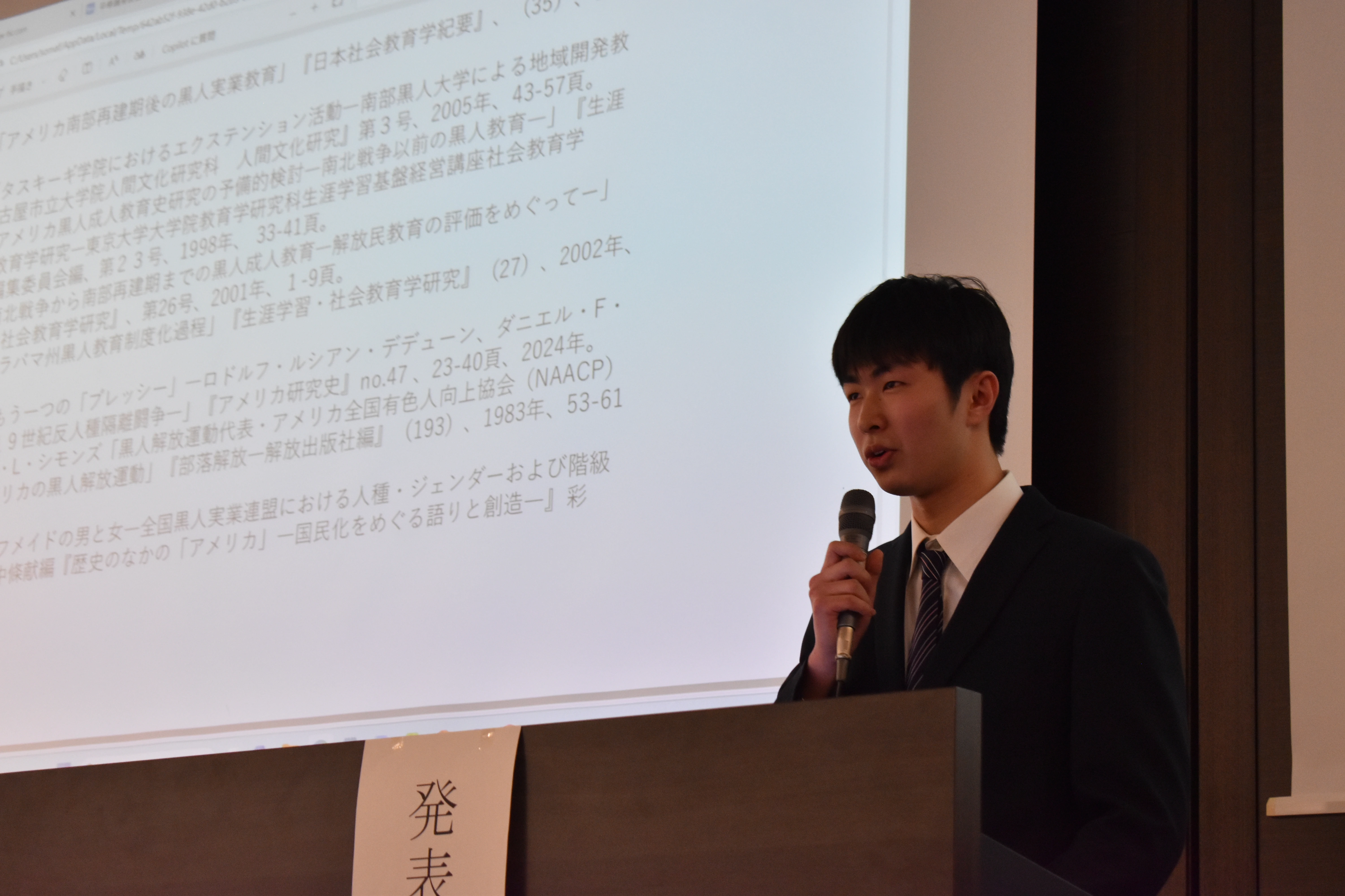 それぞれの内容には踏み込みませんが、卒論・修論発表会に選ばれる論文となると、さすがに力作ぞろい。どれも聞きごたえがあります。個人的には、子どもの問題や災害の問題など、今日的な課題に通じるようなテーマ設定が少なからずみられた点と、戦後のサークル運動の通時的検討や、旅が終われば廃棄される「汽車土瓶」(近代の駅弁と一緒に売られていたお茶の容器)への着目という、これまであまり研究されてこなかったテーマに着目し、論点とすることで、新たな視点から歴史像が復元されている点に、たいへん興味を覚えました。また、いずれの発表もテーマに関する資史料をしっかり集め、なおかつ適切に整理・分析したうえで立論され、説得力のある議論を展開しているところは、皆さんさすがだな、と思った次第です。すべての発表を聞かせていただきましたが、とても勉強になりました。