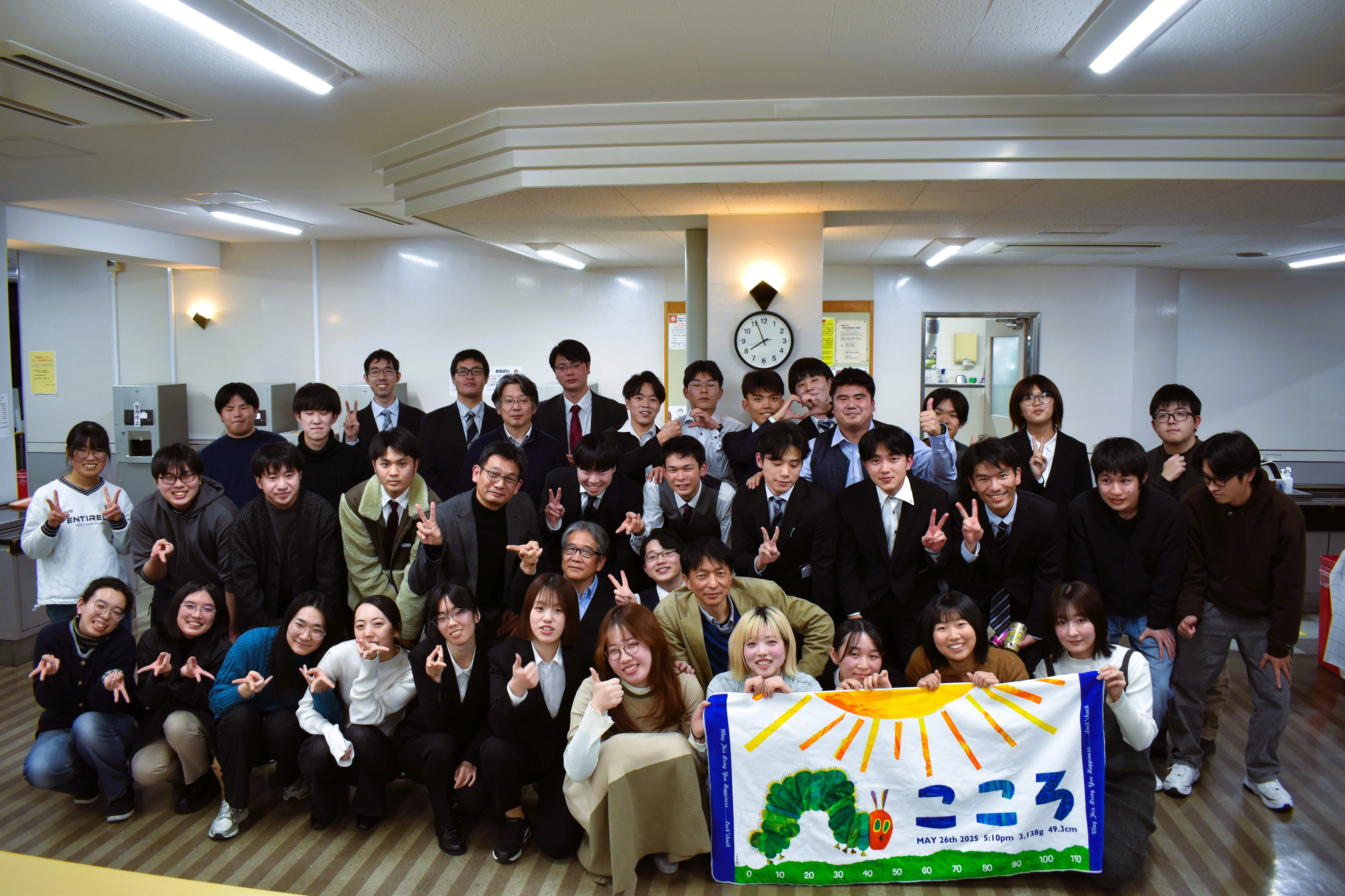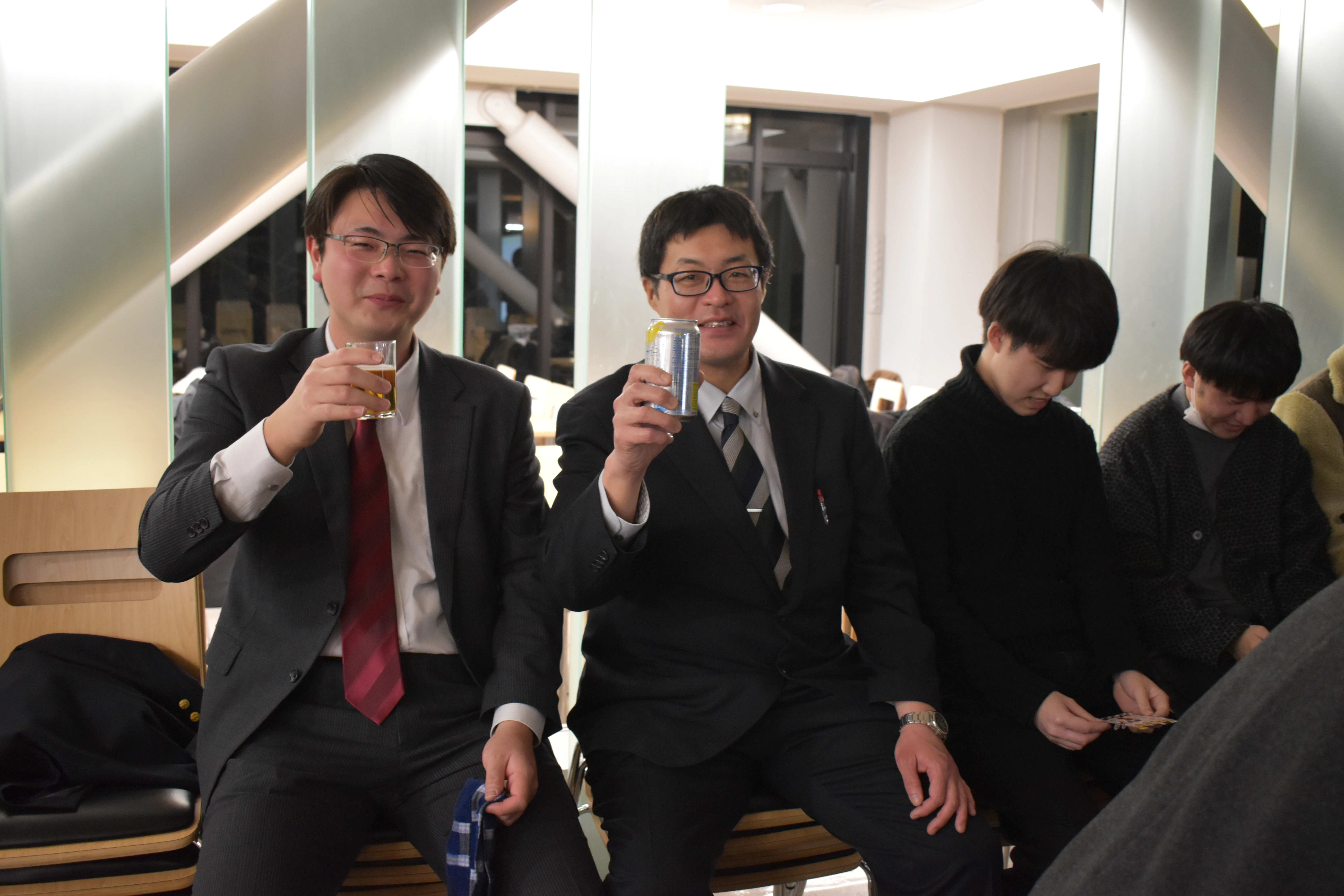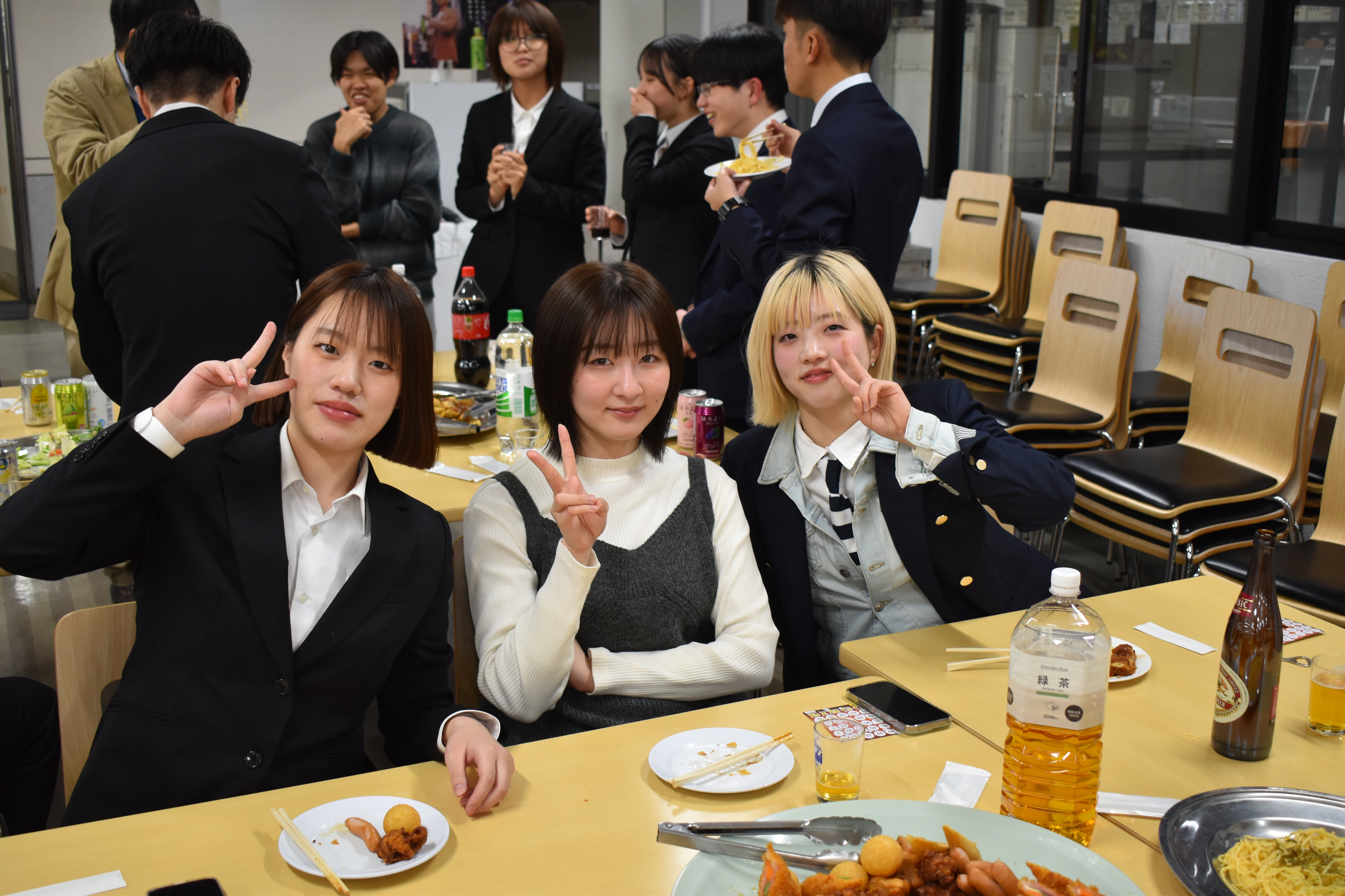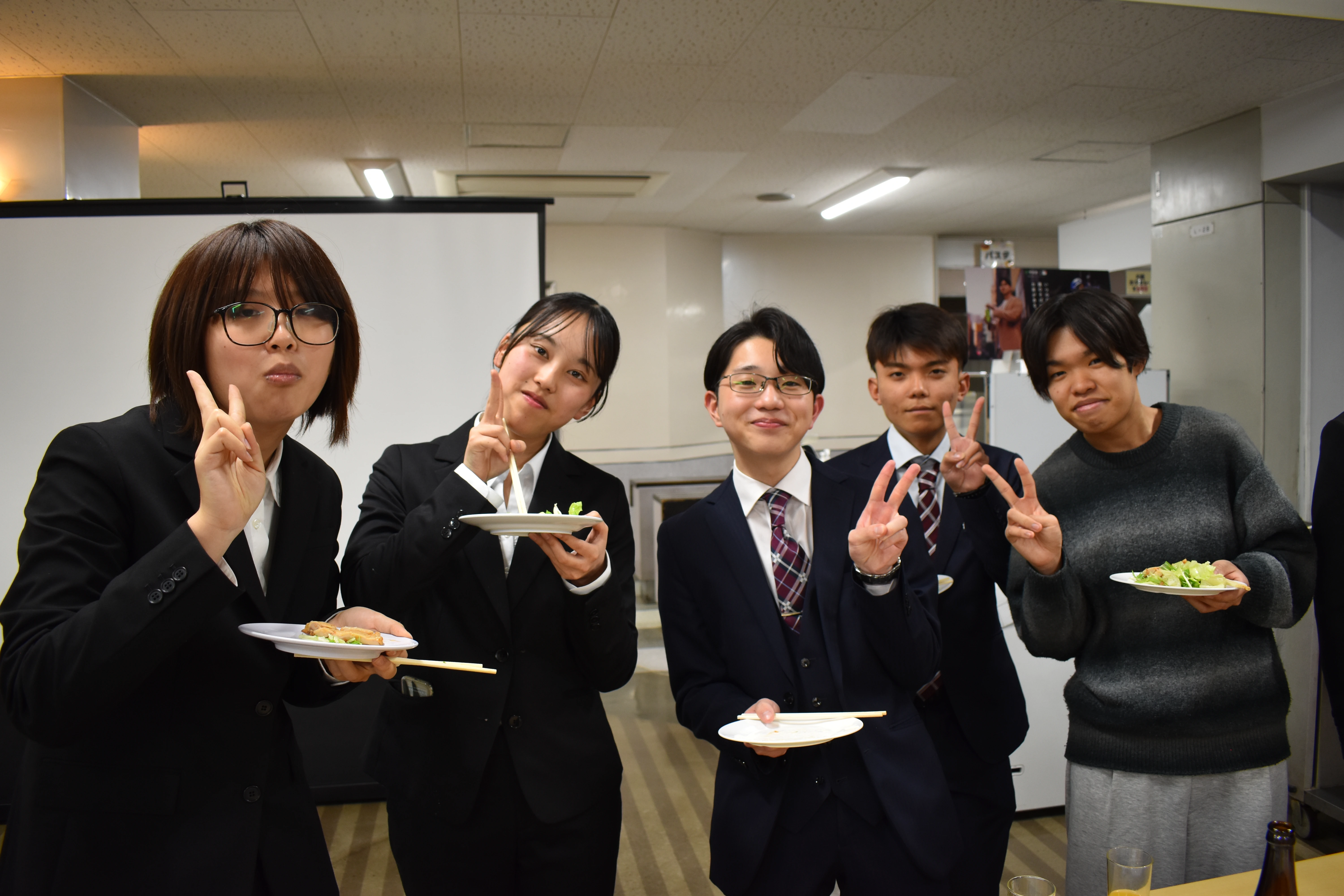 発表会が終わった後は、学生委員の主催で卒業生追い出しコンパが開催されました。今年の会場は学内の第2食堂です。卒業予定の4年生に在学生と卒業生がまじりあい、楽しいひと時となりました。ビンゴ大会も盛り上がりました!